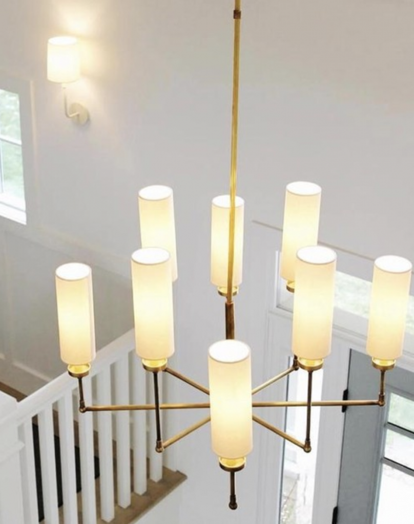 Large Ziyi Chandelier with Linen Shades. Choose finish.
