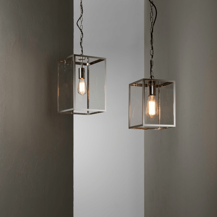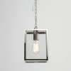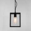 Homefield exterior pendant. Textured Black or Polished Nickel finish with clear glass.