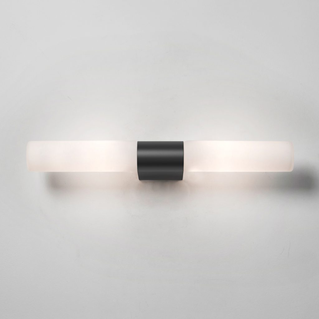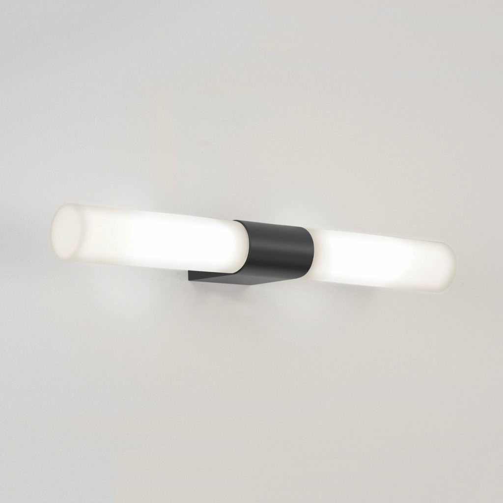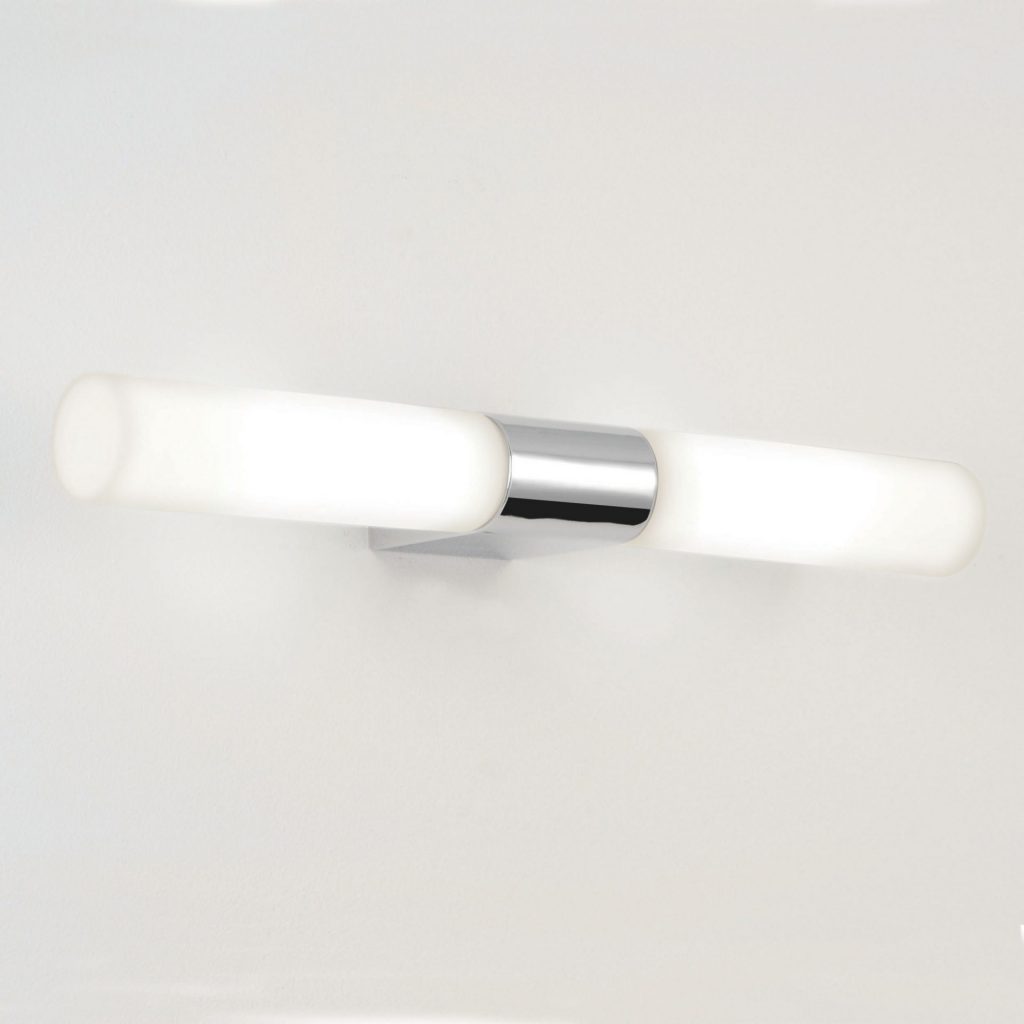 Padova bathroom wall-light. Polished chrome finish, white opal glass diffuser. IP44 rated, suitable for bathroom zones 2 and 3. Class 2, double insulated.