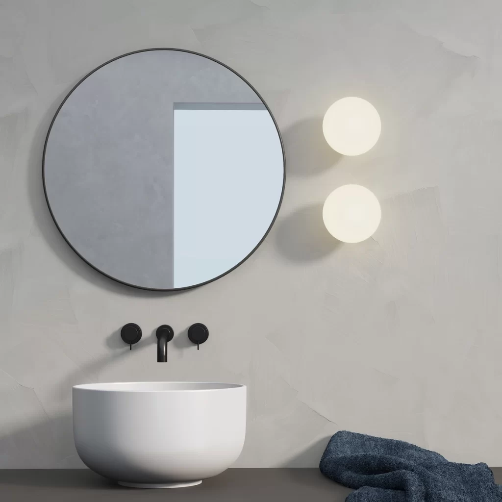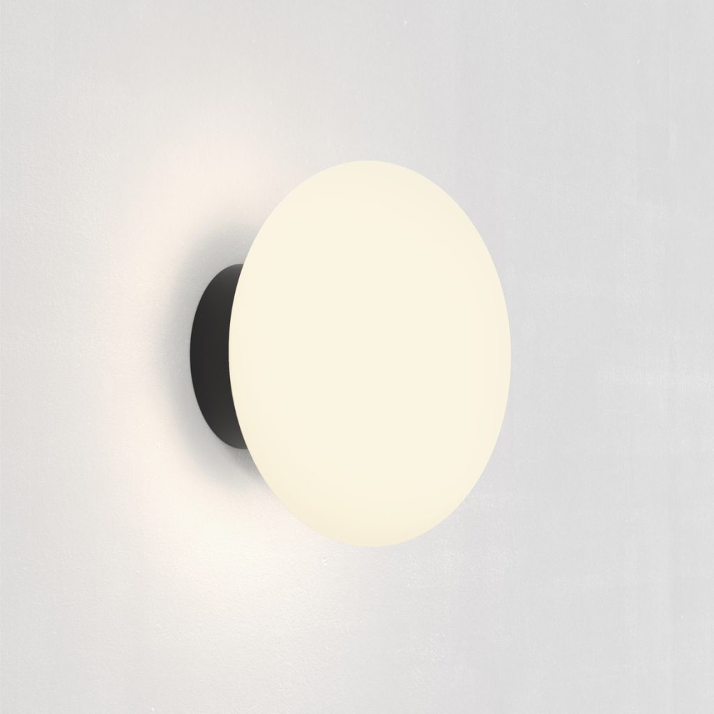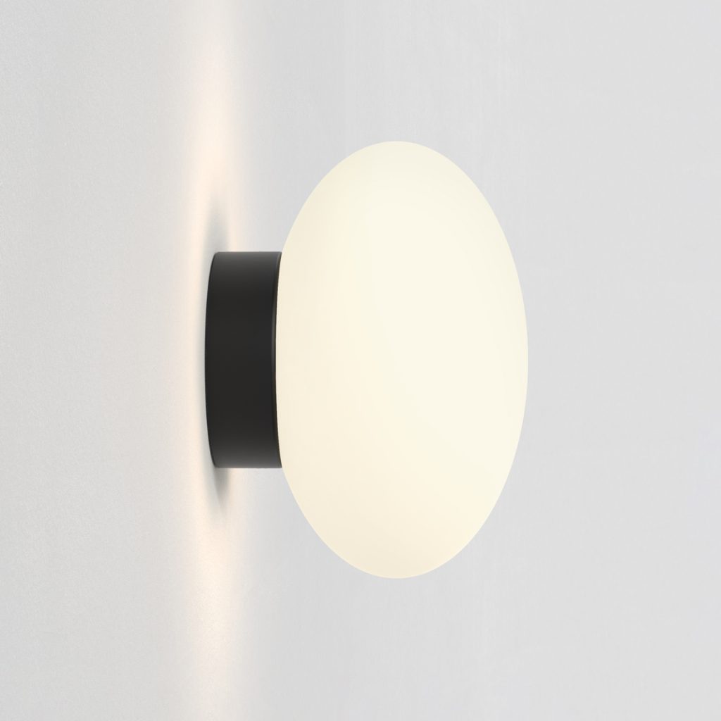 Illuminate your bathroom with the white glass Zeppo wall light.