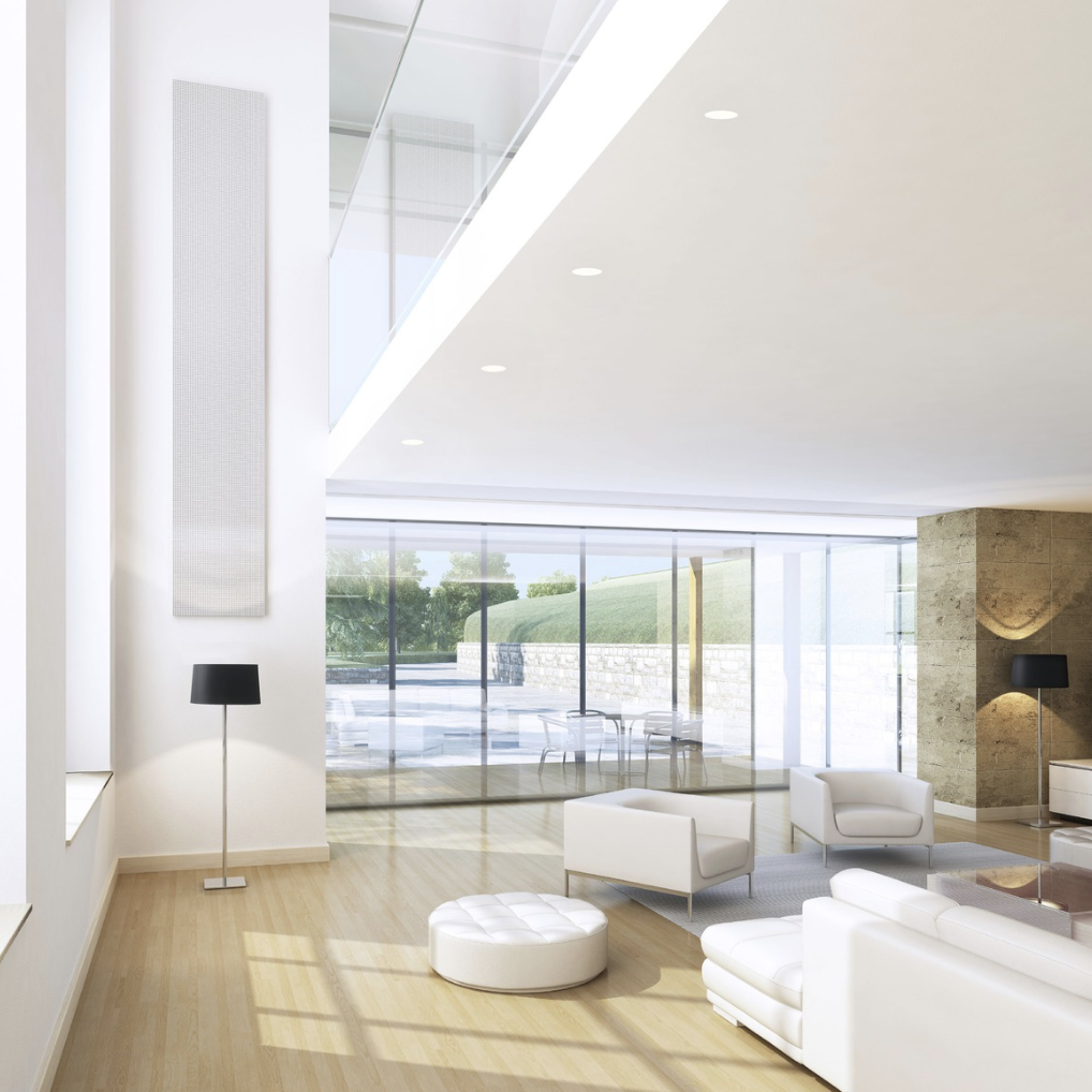Interior recessed downlight. Textured white finish. IP20 rated, suitable for bathroom zone 3. Class III. Requires a 700mA constant current LED driver, not included. This product can be dimmed if a dimmable driver is used.
