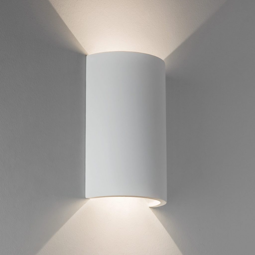 Serifos 170 LED interior wall-light. White plaster finish. Uses two 3w LED. IP20 rated, suitable for bathroom zone 3. Class I, earthed. Includes integral LED driver. This product can be spray painted. 2700K.