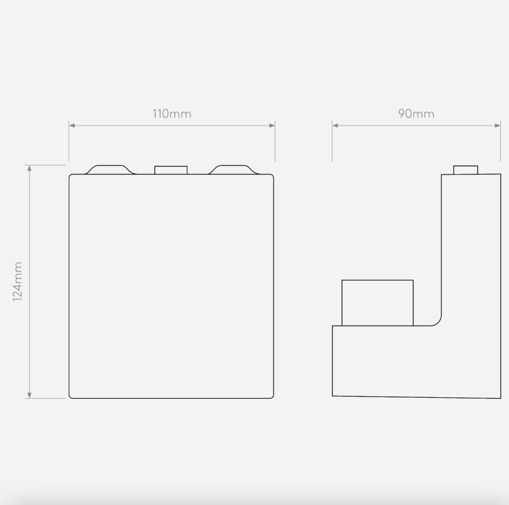- Dimensions: H 124, W 110, Depth 90mm