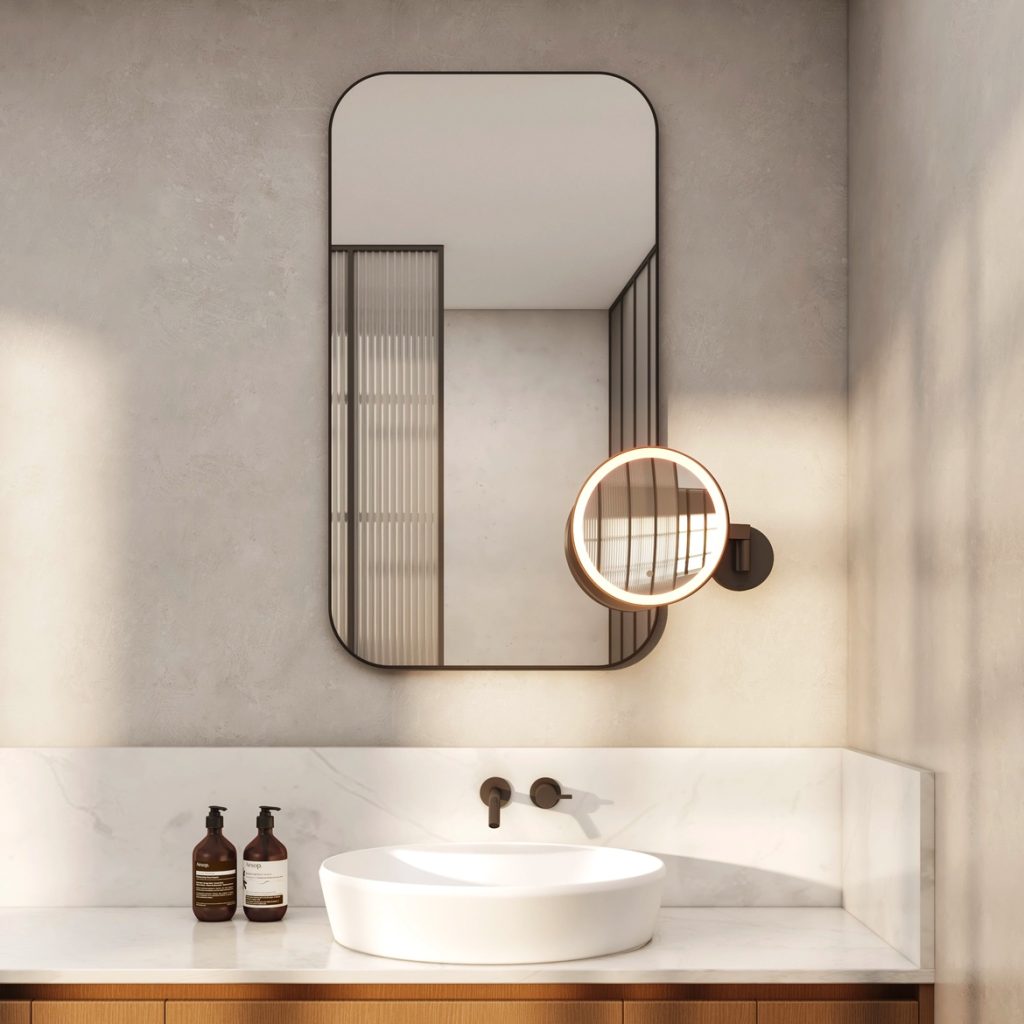 A clean, contemporary illuminated magnifying mirror, the robust Nagoya is an invaluable lighting solution for any bathroom. Incorporating a wave sensor for hands-free activation, the fully adjustable arm and neck direct the mirror exactly where it’s required, perfect for shadow-free task lighting.