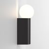 This simple geometric bathroom wall light is designed for use alongside mirrors. Its replaceable opal-glass shade diffuses a warm, ambient glow. The bracket is die-cast for enduring quality and a crisp finish. IP44 rated for safe use within bathroom areas.