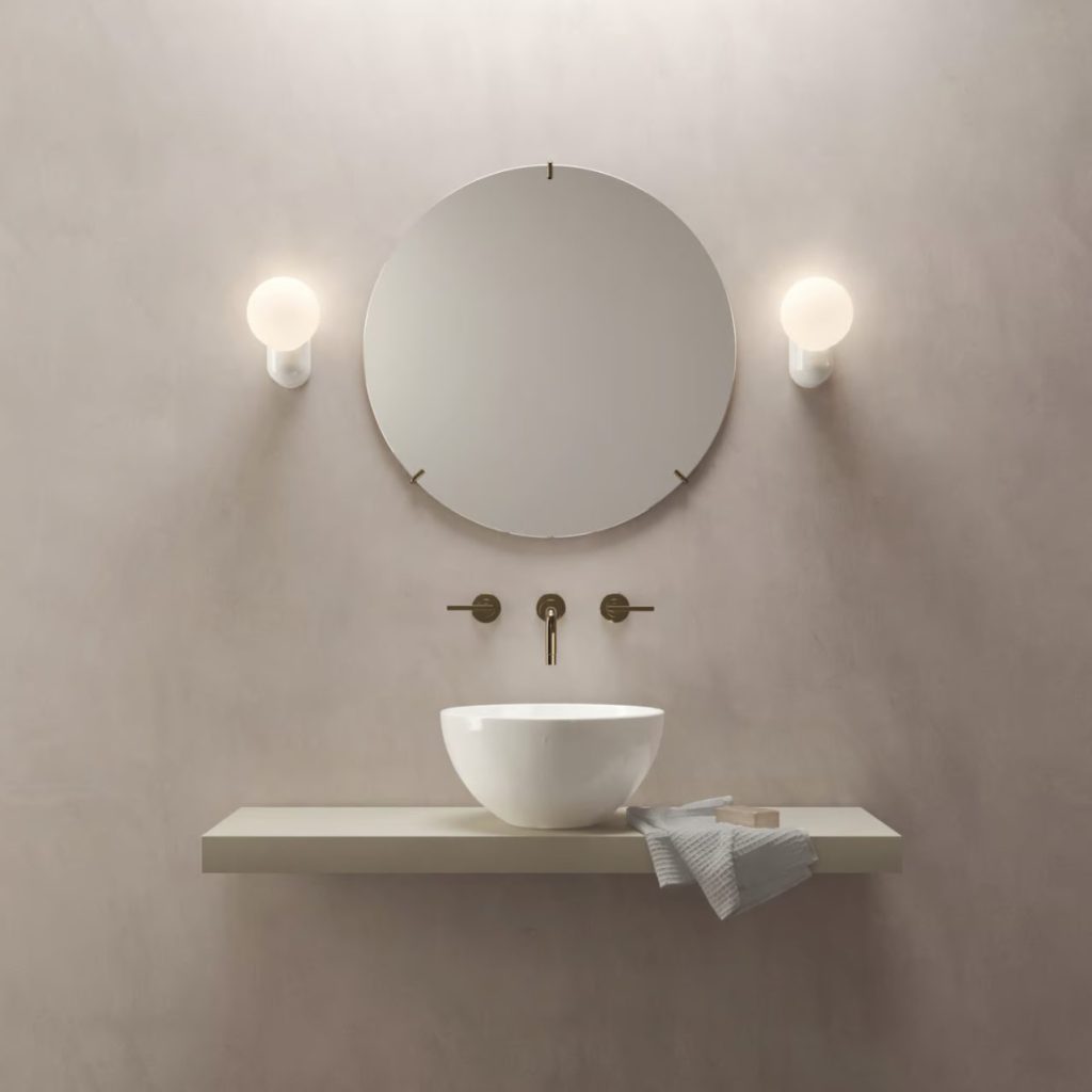 With its extremely durable ceramic base and glass shade, Lyra is the perfect solution for adding warm, comfortable task lighting to any modern bathroom wall. Its sleek design makes it an ideal choice for mounting on one or both sides of the mirror.