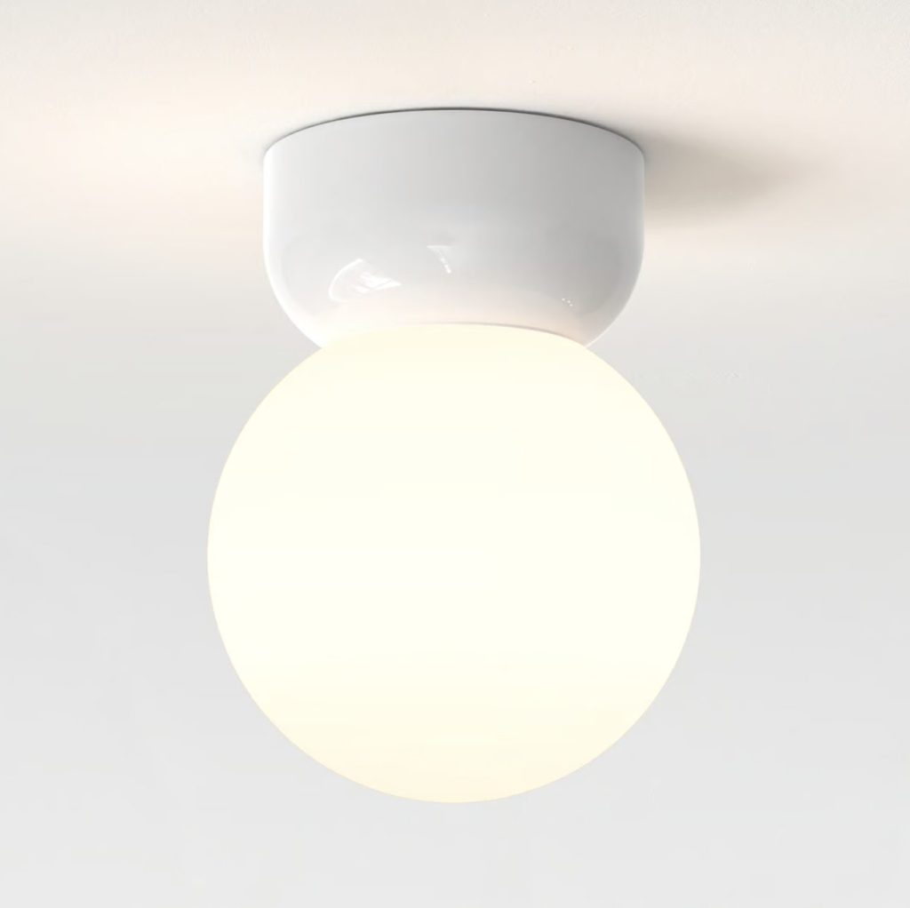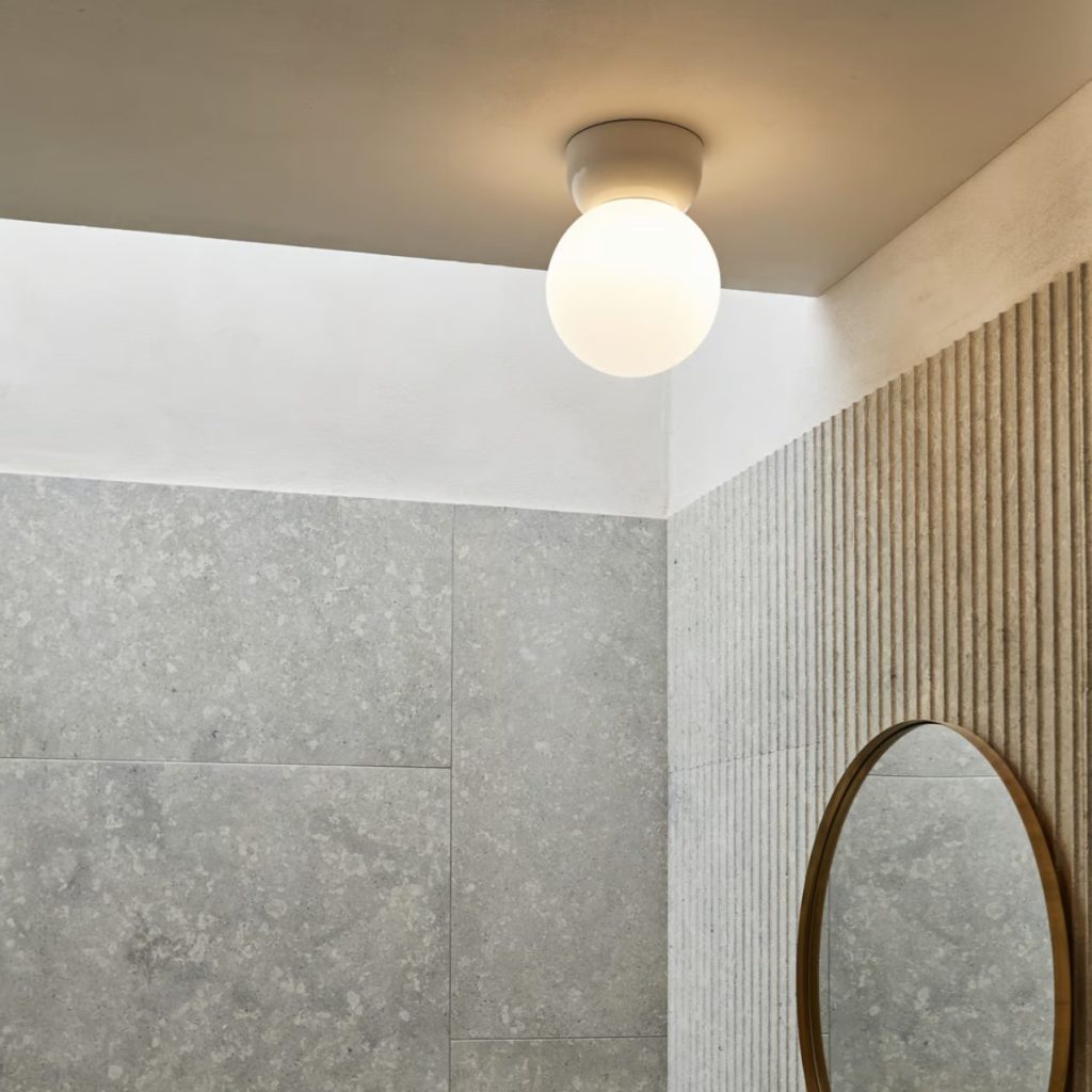 With its extremely durable ceramic base and glass shade, Lyra is the perfect solution for adding comfortable overhead lighting to any modern bathroom. Its sleek design also makes it an ideal choice for installation in other small spaces, such as cloakrooms.