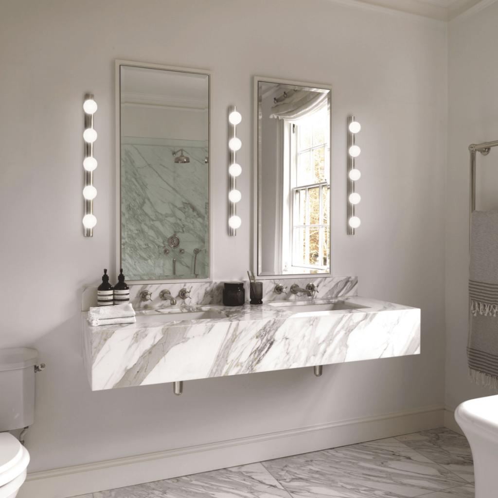 Intended for bathrooms or dressing rooms, it can be positioned both horizontally or vertically around a mirror and makes efficient task lighting for makeup application or shaving.