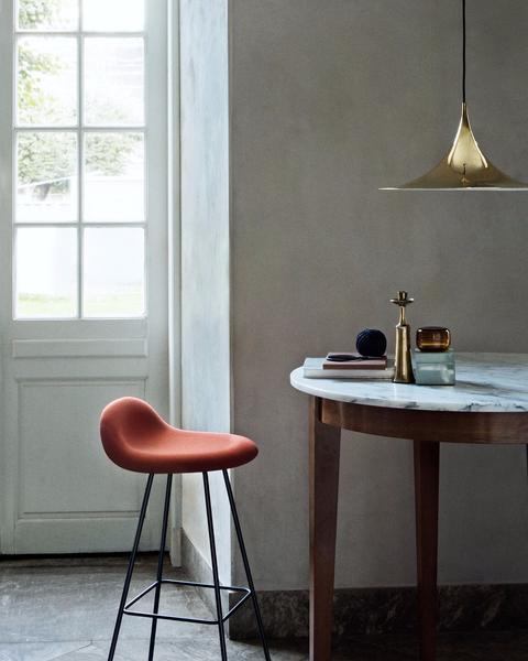 The Semi Pendant is a unique pendant lamp, based on two quarter-circles put together, back-to-back. It’s distinctive arch-shaped, enamelled metal shade creates a diffused, cone-shaped light, ideal over a dining table or kitchen work surface.