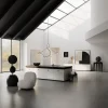 Kumo, meaning clouds in Japanese, is all about organic shapes unfolding above you. Created from brass plated metal pipes with fitted acrylic tubes, the light diffuses a warm ambience through the space. Bended in various sharp angles, Kumo pushes the boundaries of lighting design with its bold organic shape, becoming the lamps signature.