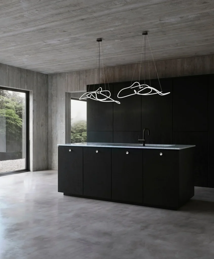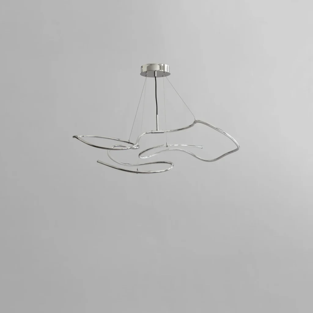 Drawing inspiration from minimalist art, the Ghost Chandelier seamlessly melds light with sculpture, embodying a graphic lighting aesthetic. The Ghost’s defining feature is its radiant white acrylic tube, which flows in various directions, forging an ambient illumination reminiscent of organic patterns. Originating from a hand sketch, the design infuses spaces with an artistic and graphic ambiance. Its ever-evolving appearance captivates observers, morphing into diverse patterns and forms depending on one’s vantage point. In any setting, Ghost asserts itself as a centrepiece.