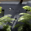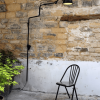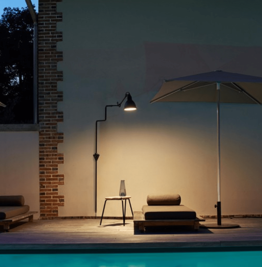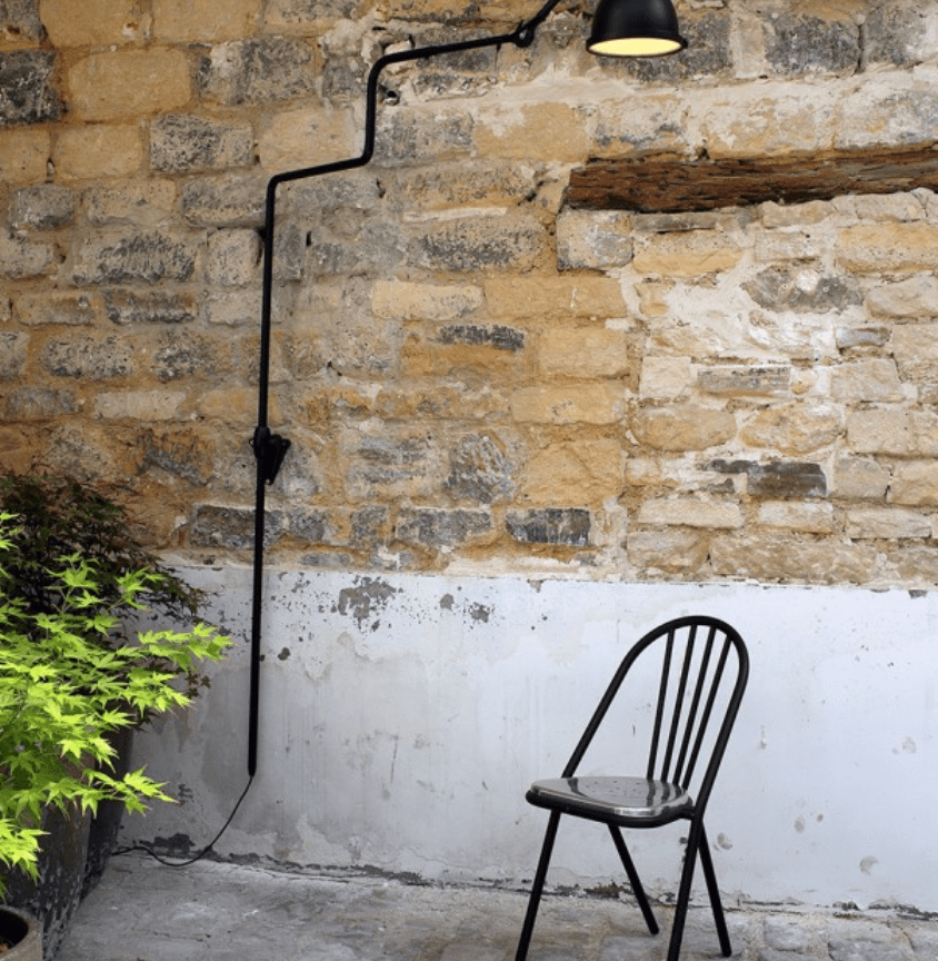 An atypical wall lamp for an outdoor use. It can be mounted on a wall or for example directly on a big and heavy wooden table. 316 stainless steel for the body and cast, silicon for the waterproof seals, borosilicate glass for the reflector casing.