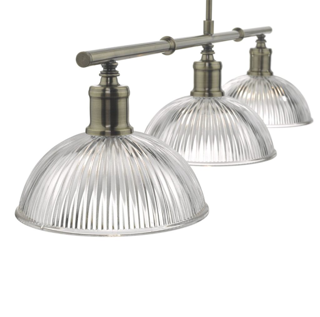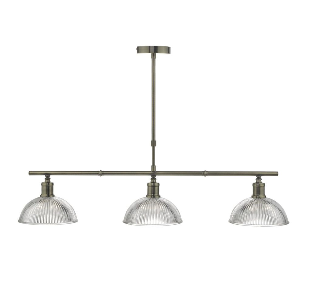 The lovely mid-century inspired Dara features prismatic glass with detailed metalwork, complete with an antique brass finish.
