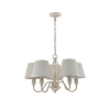 Laura Ashley 5 Light Ellis Chandelier in Satin-Painted Spindle with Ivory Shades or Polished Chrome with Grey Shades.