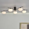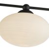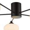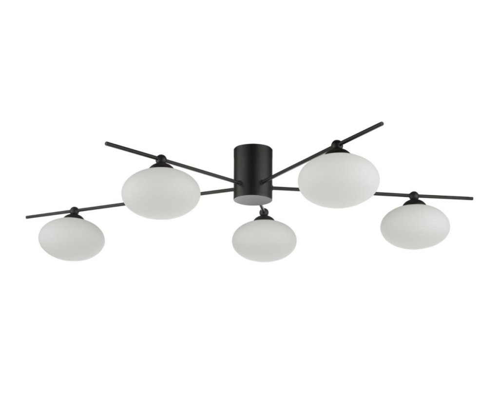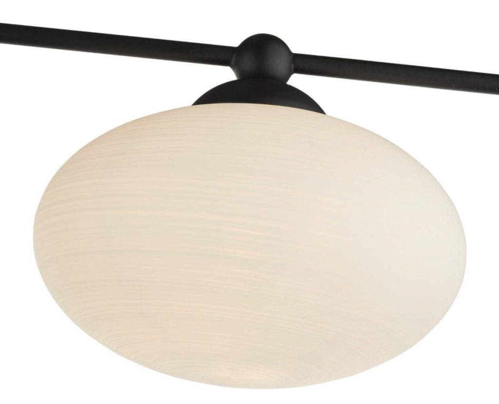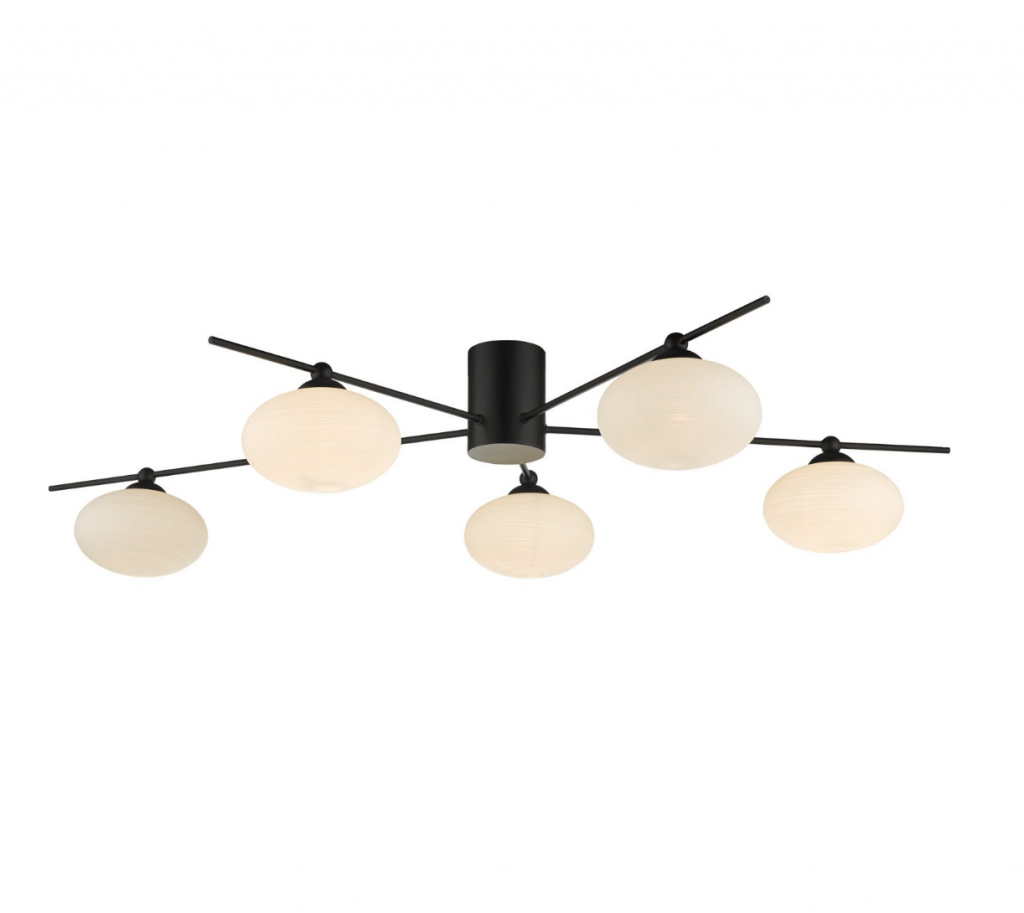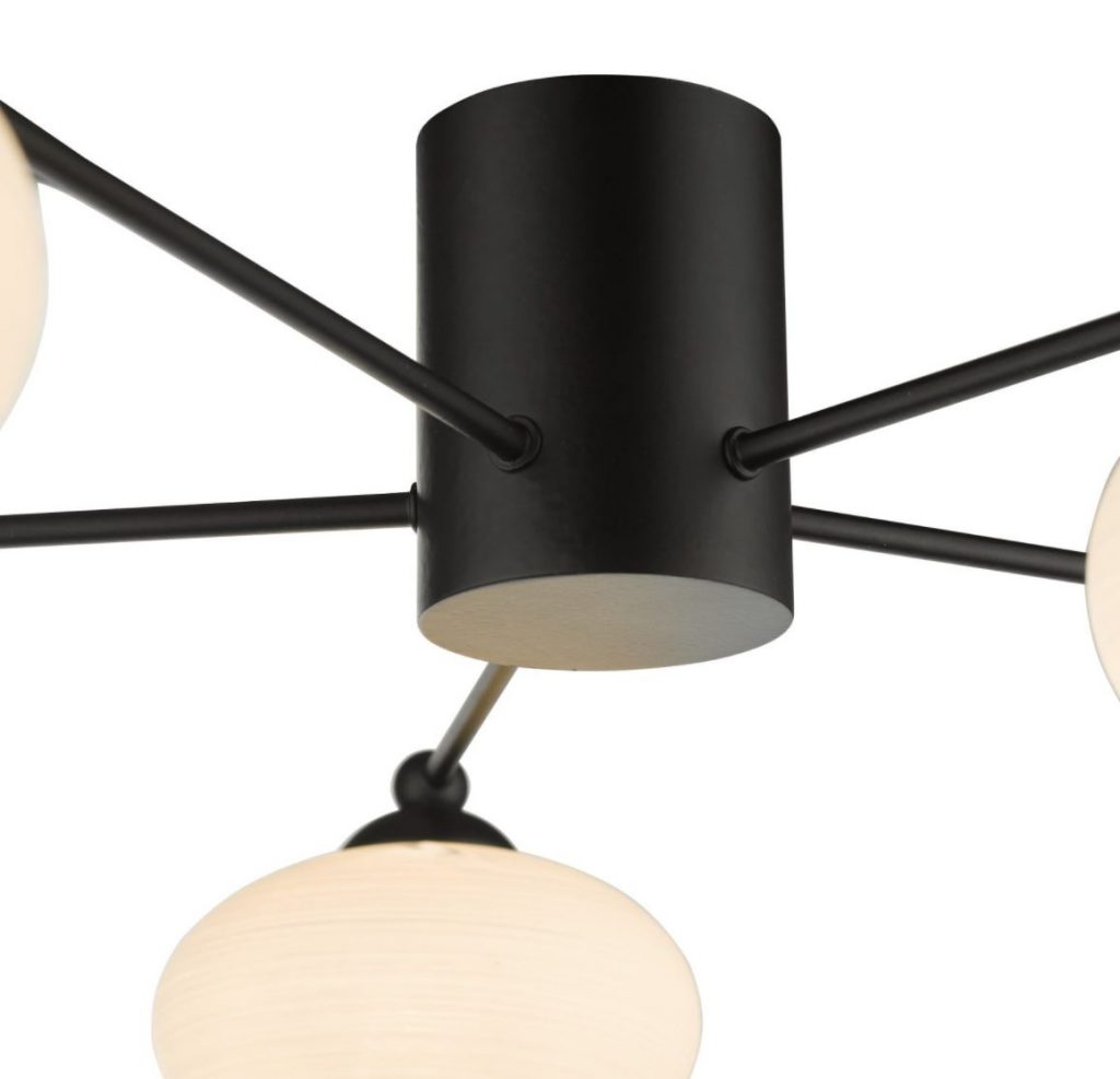The minimalist Jasper 5 light semi-flush ceiling light is finished in matt black with subtle spiral textured opal glass resting on fine black arms mounted on a narrow minimalist centre body.