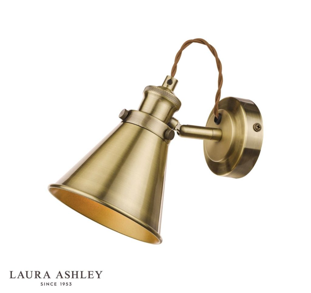 From iconic brand Laura Ashley, the Rufus single spotlight has a superior antique brass finish that will look superb in any living area were you are looking for a directional light to focus on a feature or illuminate a small area.