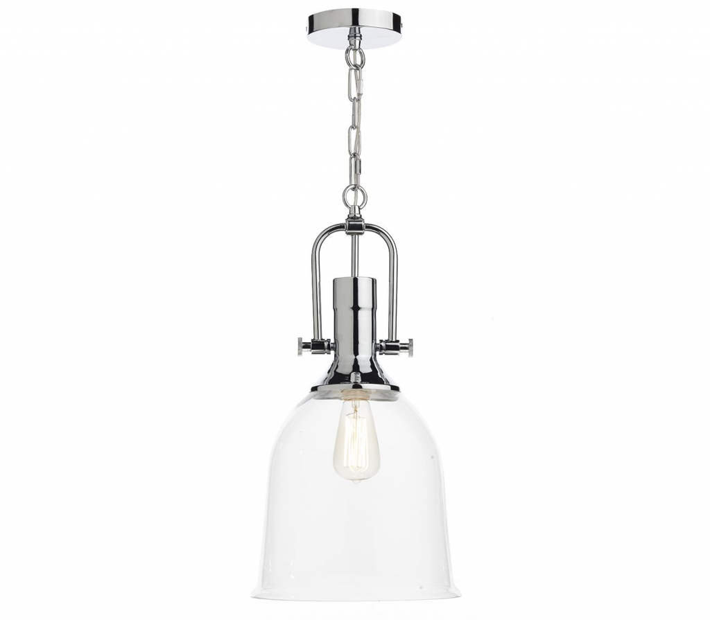 The NOLAN 1lt Pendant features a polished chrome frame and a clear glass shade.
