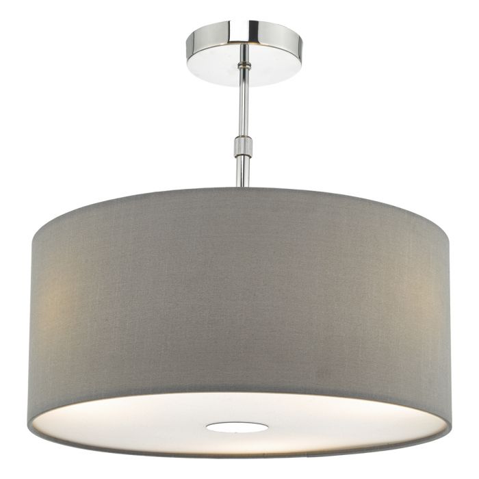 RONDA – a beautiful drum shade. Finished with a soft white acrylic diffuser with chrome disc detail. Matching suspension available.