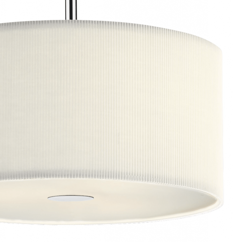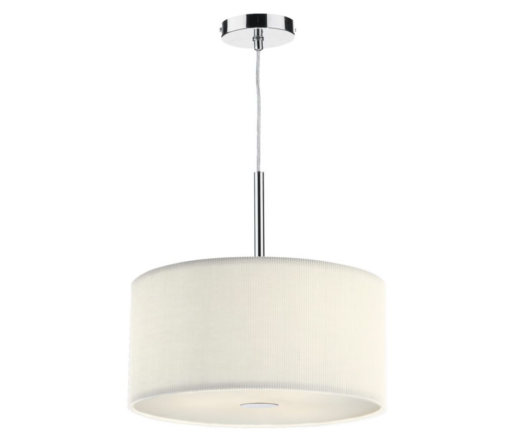 The ZARAGOZA 40cm 3lt Pendant has a polished chrome ceiling plate and comes complete with a cream micro pleat shade and frosted acrylic diffuser.