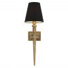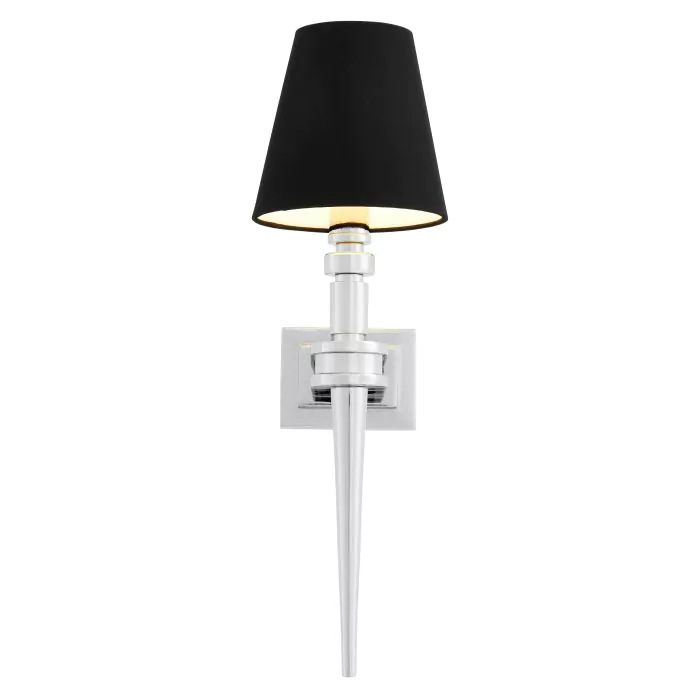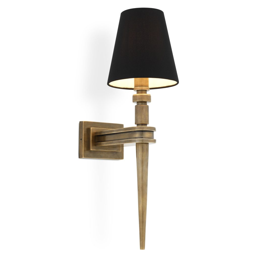 Invite the restrained glamour of the Waterloo Single Wall Lamp into your home. Crafted by skilled artisans, this contemporary wall sconce takes inspiration from vintage wall torch lamps. It features a vintage brass or nickel finish and comes with a black lampshade.