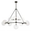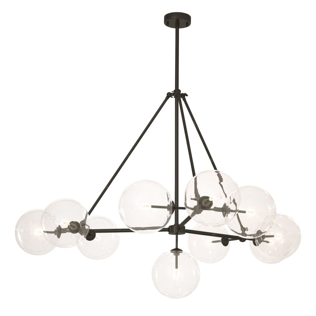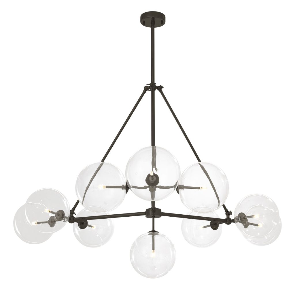 Illuminate your lounge or dining room pleasantly with the Bermude Chandelier. This sleek contemporary luminaire with bronze finish contains 10 clear glass globes that each host their own light bulb.