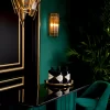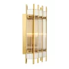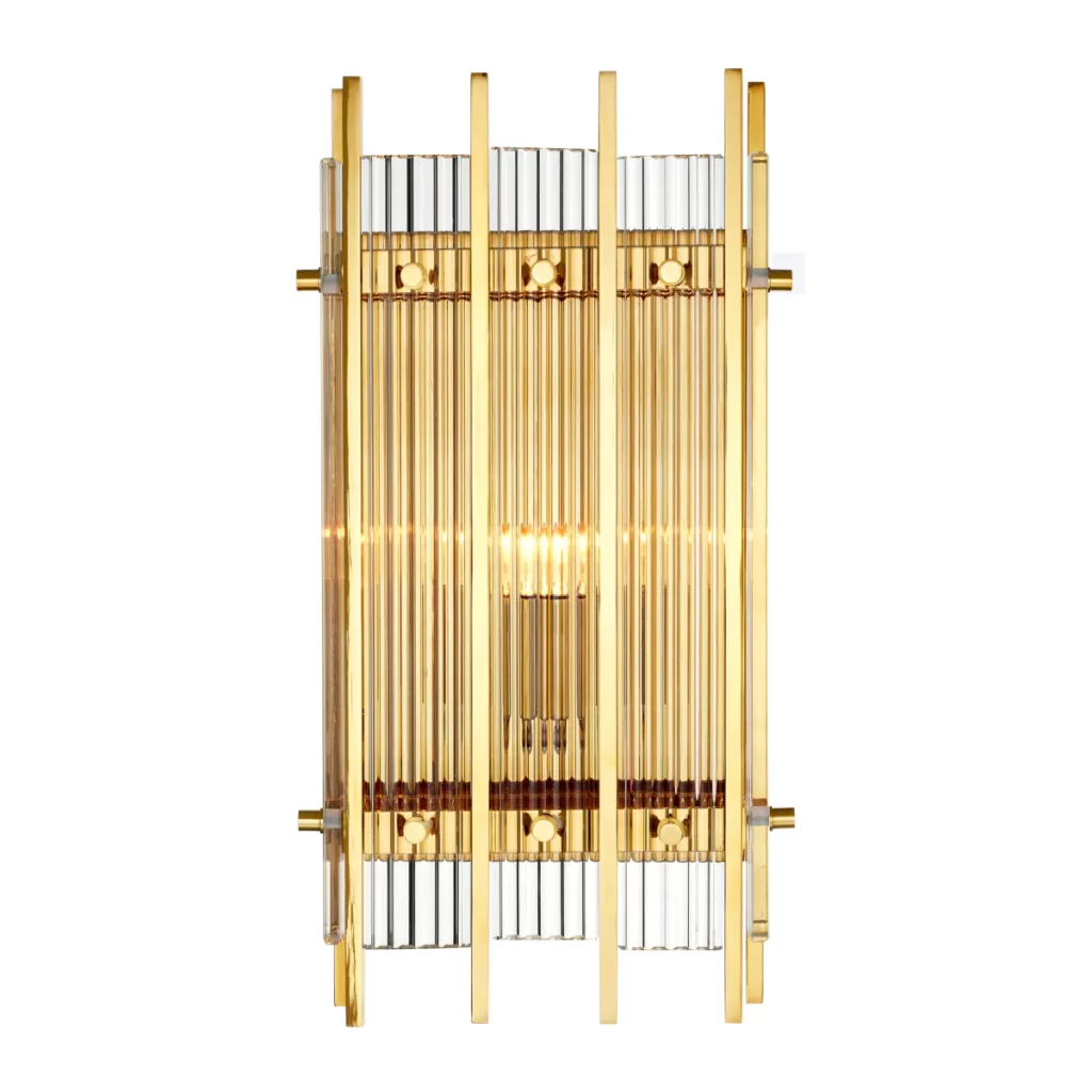 A front presentation of bold linear verticality dimensionally enhances the elongated silhouette of the Sparks S Wall Lamp. With its ribbed clear glass lampshade and gold finish, this Art Deco inspired wall sconce is a perfect fit for traditional, transitional or contemporary spaces.
