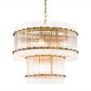 For a glamorous and contemporary aesthetic, make a statement with the Ruby S Chandelier. A modern take on classic style, this enticing 10-light luminaire with antique brass finish showcases a tapered two-tiered design with rows of ribbed clear glass.