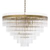 Chandelier East has more than a hint of Art Deco decadence. This stunning vintage replica chandelier with antique brass finish exudes the vibrant atmosphere of the roaring 1920s. Several tapered levels of 429 pcs clear glass rods emanate a captivating illumination. Ideally suited to modern interiors and 1920s and 1930s décors.