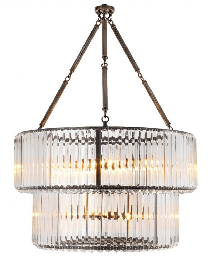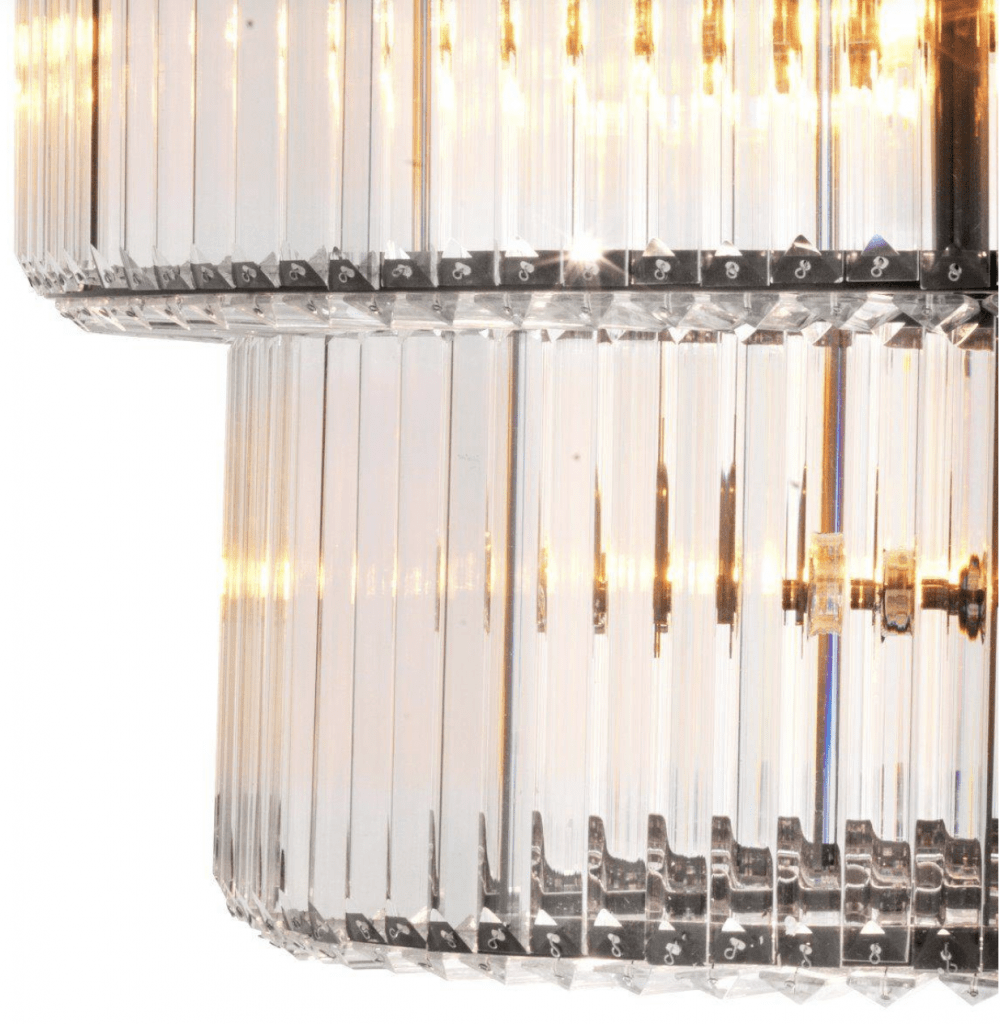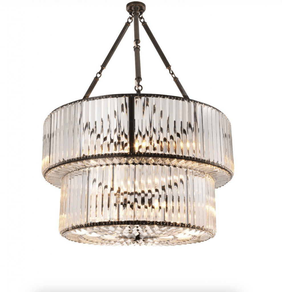 Infinity Chandelier Double in Gunmetal or Nickel with Crystal Glass.