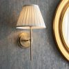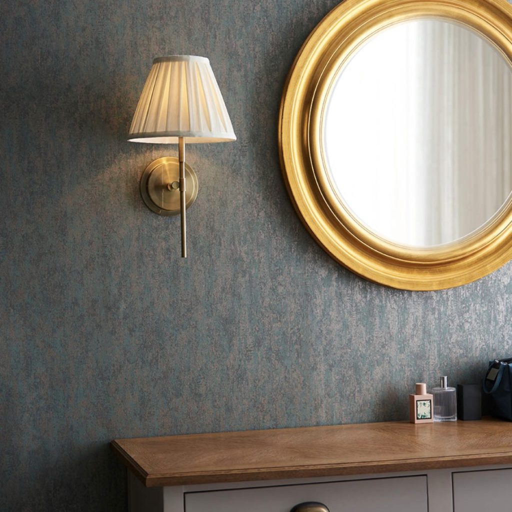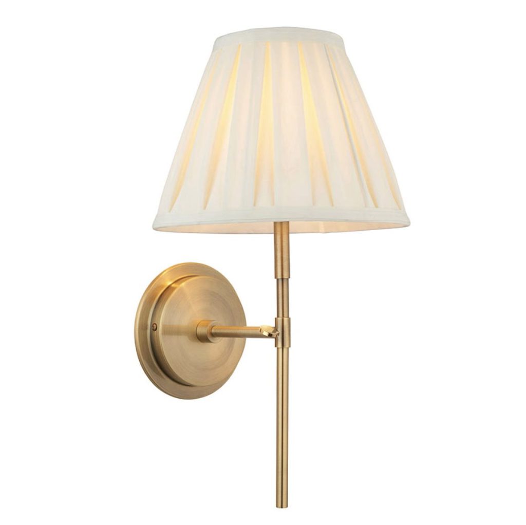 A contemporary take on a classic style, on trend antique brass in elegant lines finish this timeless wall light. Adorn with a handmade cream cotton 10 inch box pleat tapered shade.