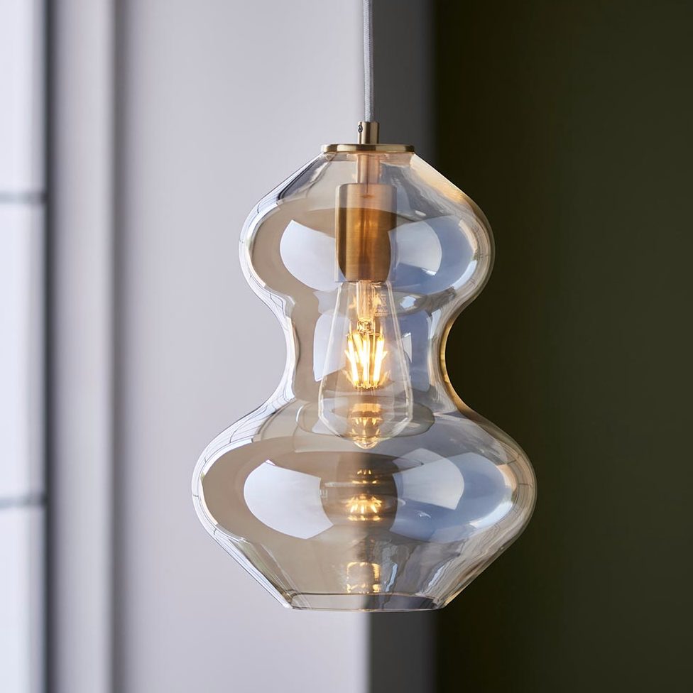 Add interesting reflections and character to any interior with this shapely champagne lustre glass pendant.