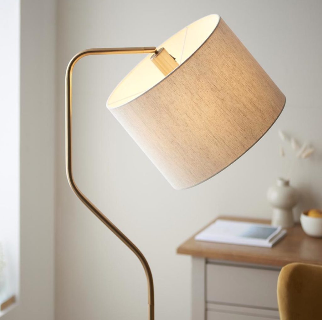 With a modern compact style, this is the ideal floor lamp to place beside your sofa or arm chair. Finished in brushed aged brass with natural linen coloured fabric shade and easy to reach lamp holder on/off switch.