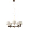 The Indara 5 light pendant features a hammered aged bronze effect fitting, with natural linen effect fabric shades. A stylish fitting which would suit a variety of styles and settings.