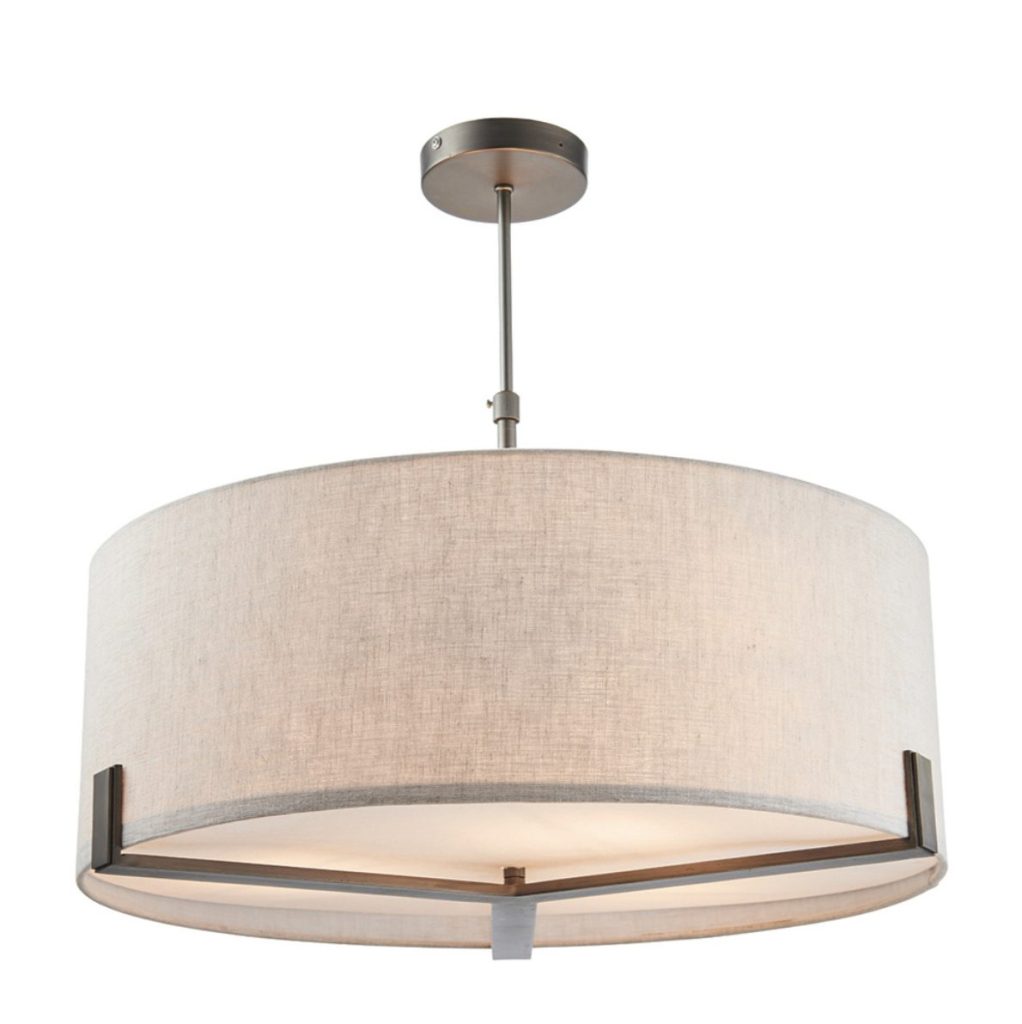 Luxurious, sophisticated ceiling light with understated metalwork in a classic brushed bronze effect plated finish. Complemented by a timeless natural linen shade complete with anti-glare fabric diffuser. Height adjustable via a versatile telescopic central stem.