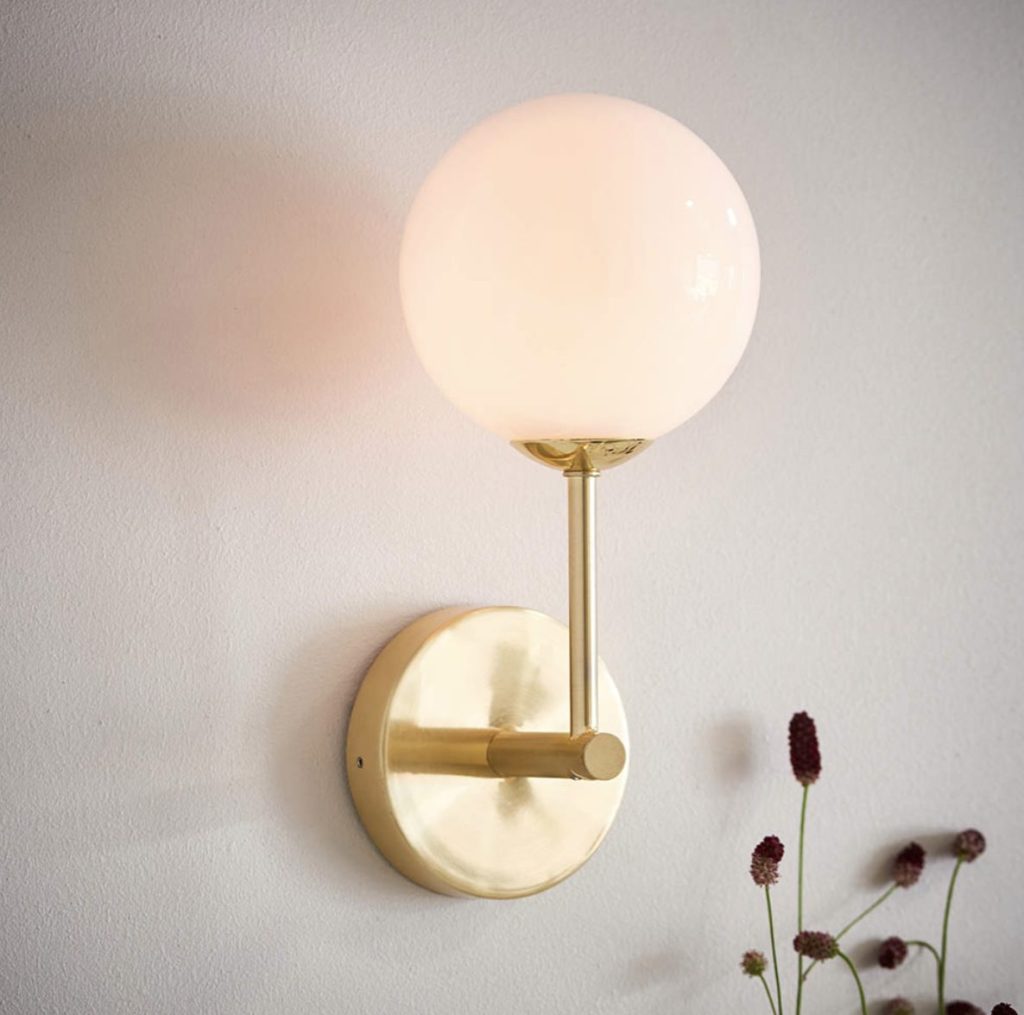 Create an ‘on-trend’ mid century feel with the Otto wall light, a perfect balance of gloss opal blown glass shades with brushed brass metalwork. Matching ceiling light available.