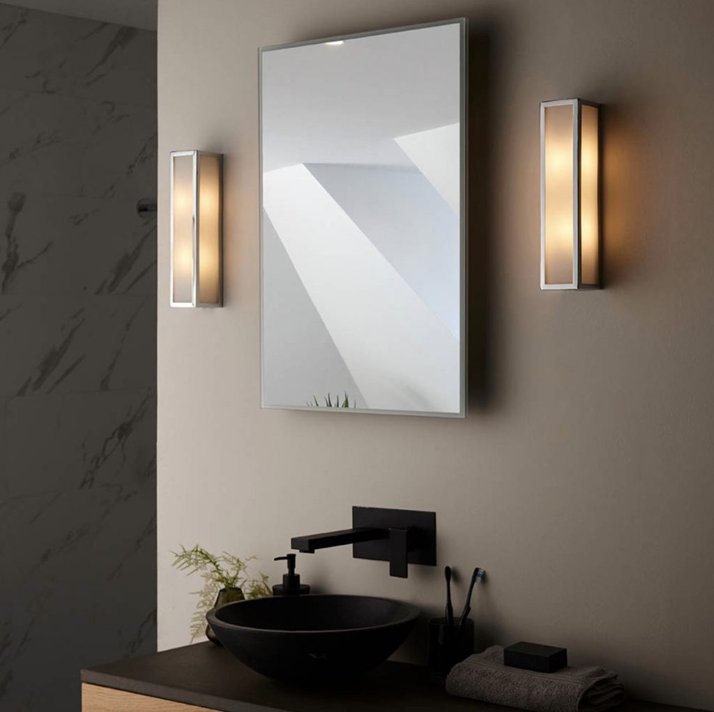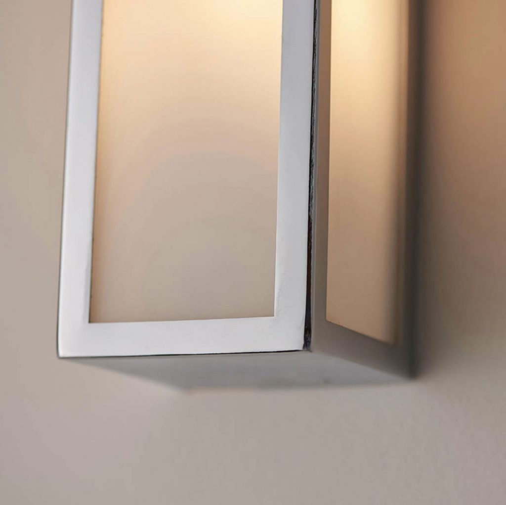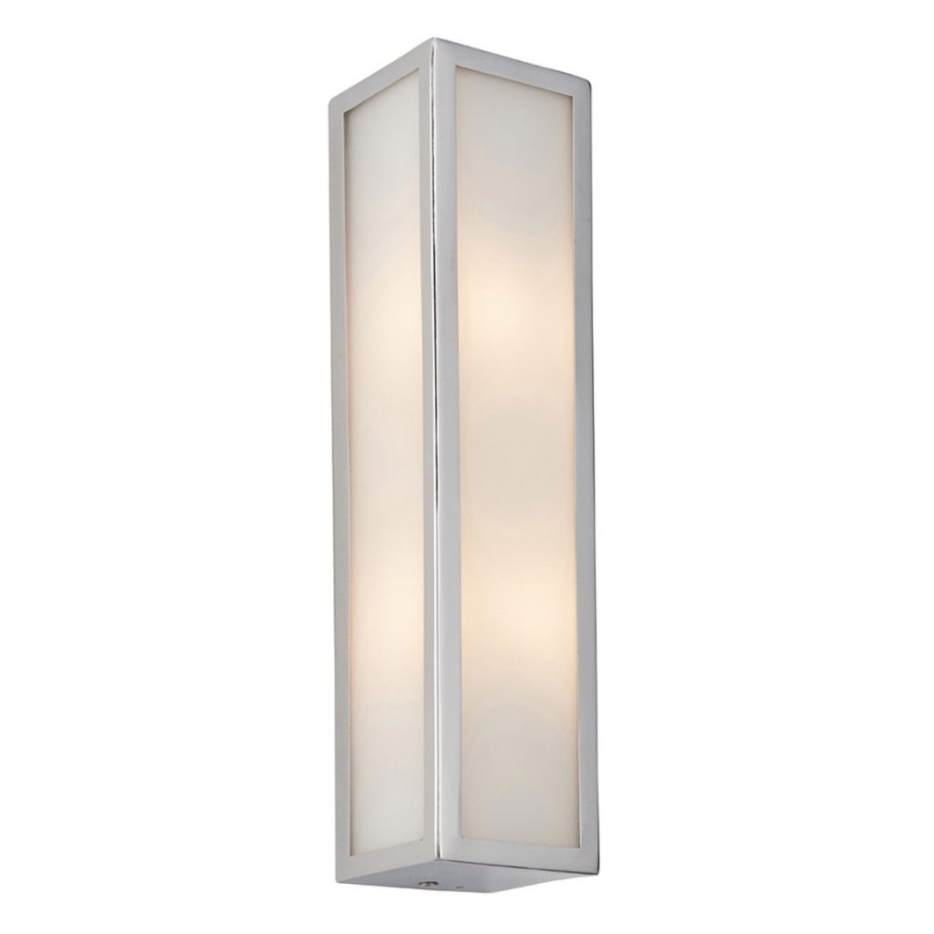 Simple yet stylish contemporary wall light with chrome plate finish and frosted glass diffuser. Dimmable and IP44 rated ideal to create a relaxing ambient light in any bathroom.