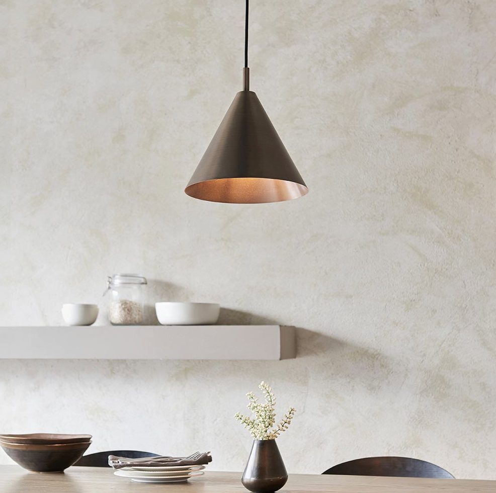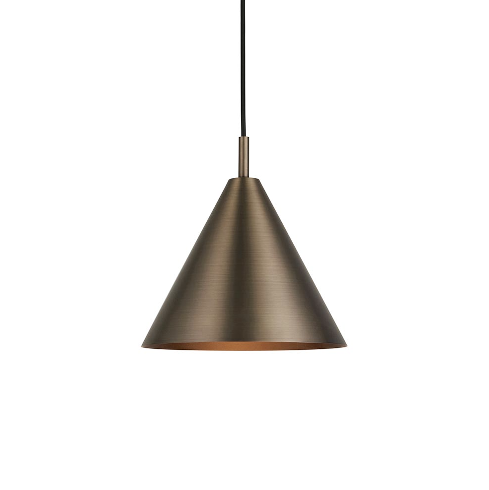 Modernise your interiors with this brushed antique brass or bronze pendant, metalwork and inner shade. Ideal for over a dining table or kitchen island, this minimal design is a great fit for both modern and traditional homes. The 1.2 metre black fabric cable gives you the flexibility to place this pendant in the perfect spot.