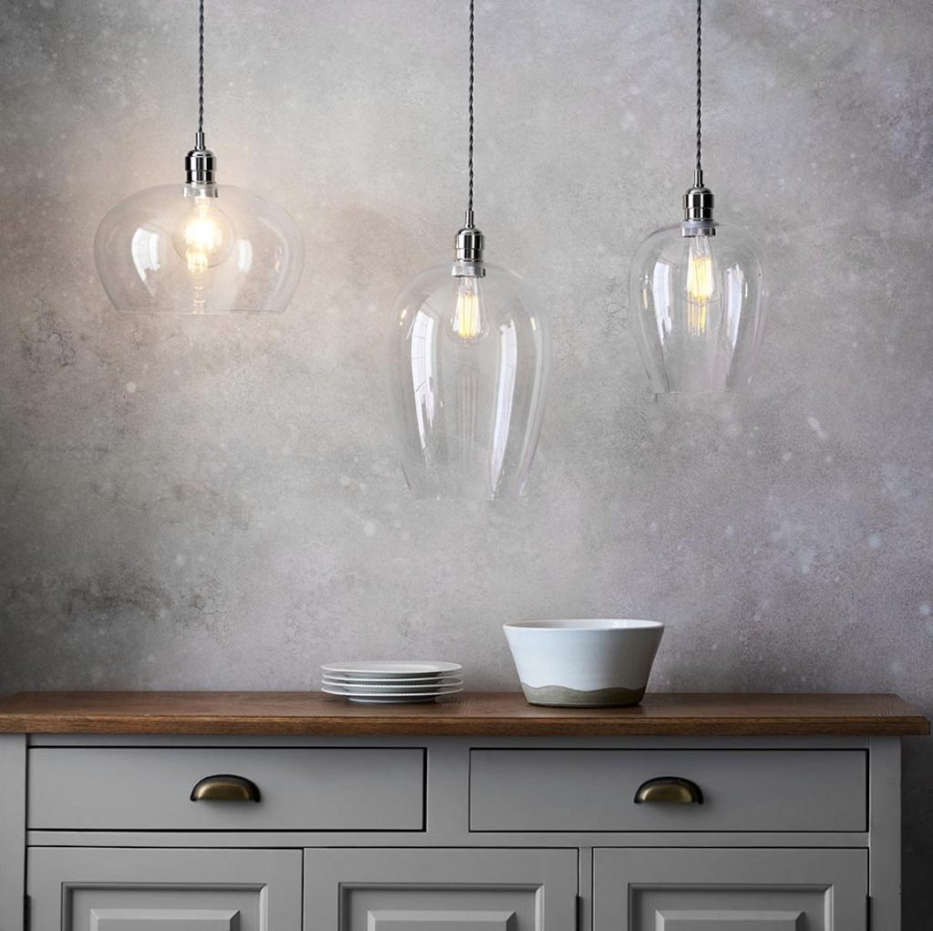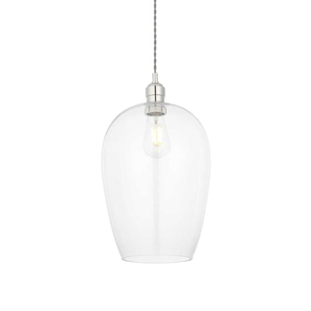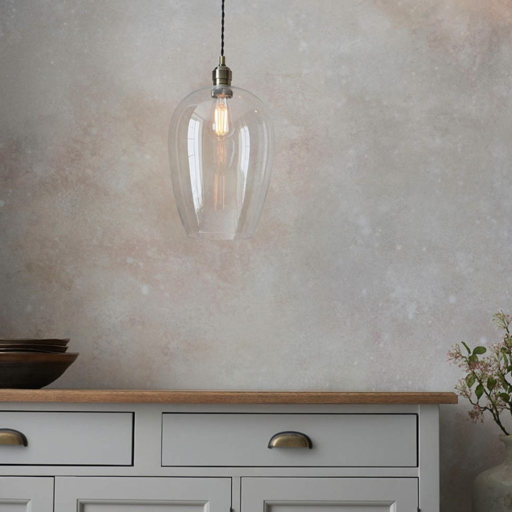 Clear glass large pendant in Antique Brass or Bright Nickel.