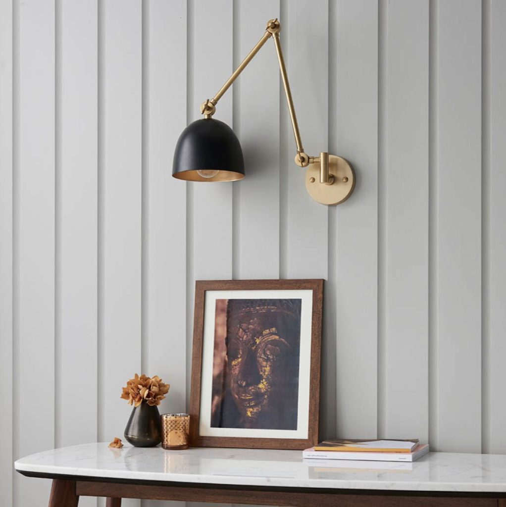 The perfect design statement, with fully adjustable arms, position either side of your bed or as a task light above a kitchen work top. The Lehal wall light constructed in brass with a striking combination of antique finish, with authentic knurled cast details and smart ‘on-trend’ matt black painted shade.