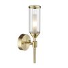 Add some mid-century design to your interior with this wall light in satin brass. Featuring clear ribbed glass shades and a circular back plate.