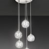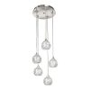 In satin nickel finish with small cut glasses. Suitable for dimming if used with mains voltage halogen lamps. LED G9 lamps may be used but suitability for dimming will depend on the lamp and switch used.
