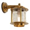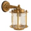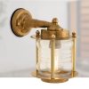 Attractive solid brass wall light featuring a contoured clear glass shade. A traditional ship style fitting and very much built to last under any conditions.