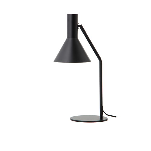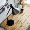 The conical shade, with its reflective white underside, directs the light exactly where you need it. A tilt able joint is located between the shade and the arm, and the table lamp stand on a simple base plate heavy enough to provide stability.
