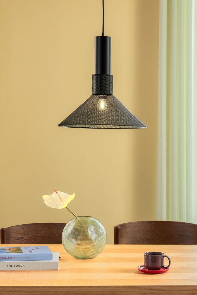 When lit, the mesh pattern casts intriguing rays of light on the ceiling and wall, creating ambience and style in your space. The bold and graphic expression with soft, calm light is such a beautiful combination, and the dramatic shape adds a cool modern twist to your room.