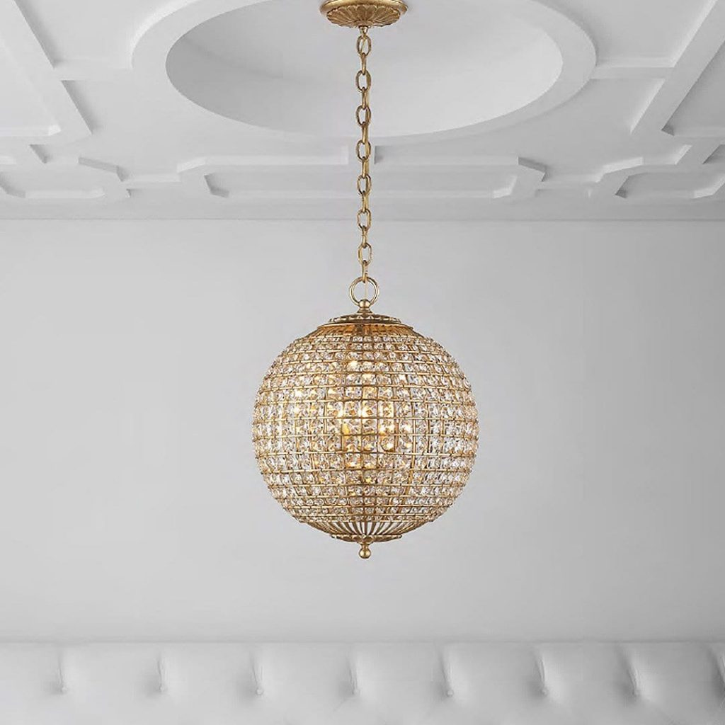 Renwick Small Chandelier with Crystal. Available in Burnished Silver Leaf or Glid.