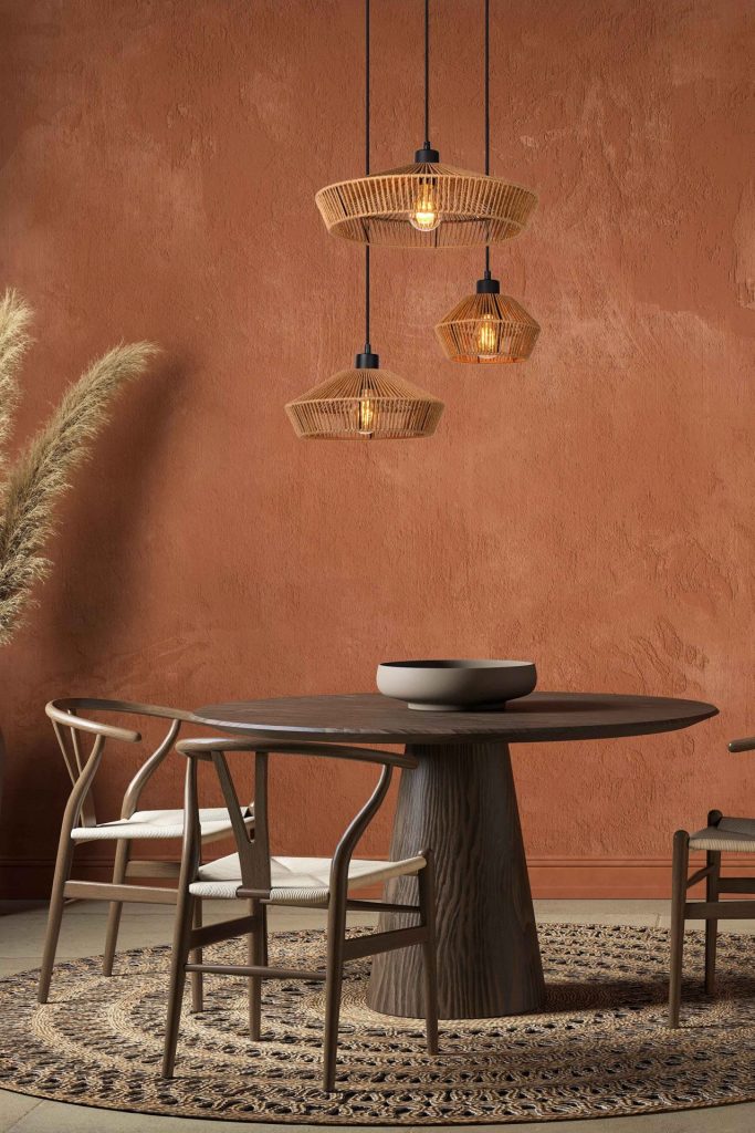 Bring a touch of unadulterated nature into your home with this woven paper pendant light. You can install Yunkai above a dining table or in a cosy seating area, preferably surrounded by many plants. Three openwork lampshades hang at different heights and give Yunkai a playful look.