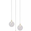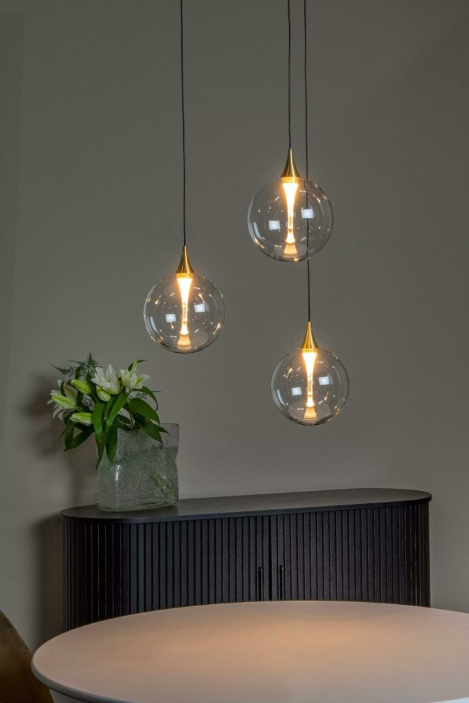 Gisela is a hanging lamp that consists of clear or amber glass globes that are adjustable in height.