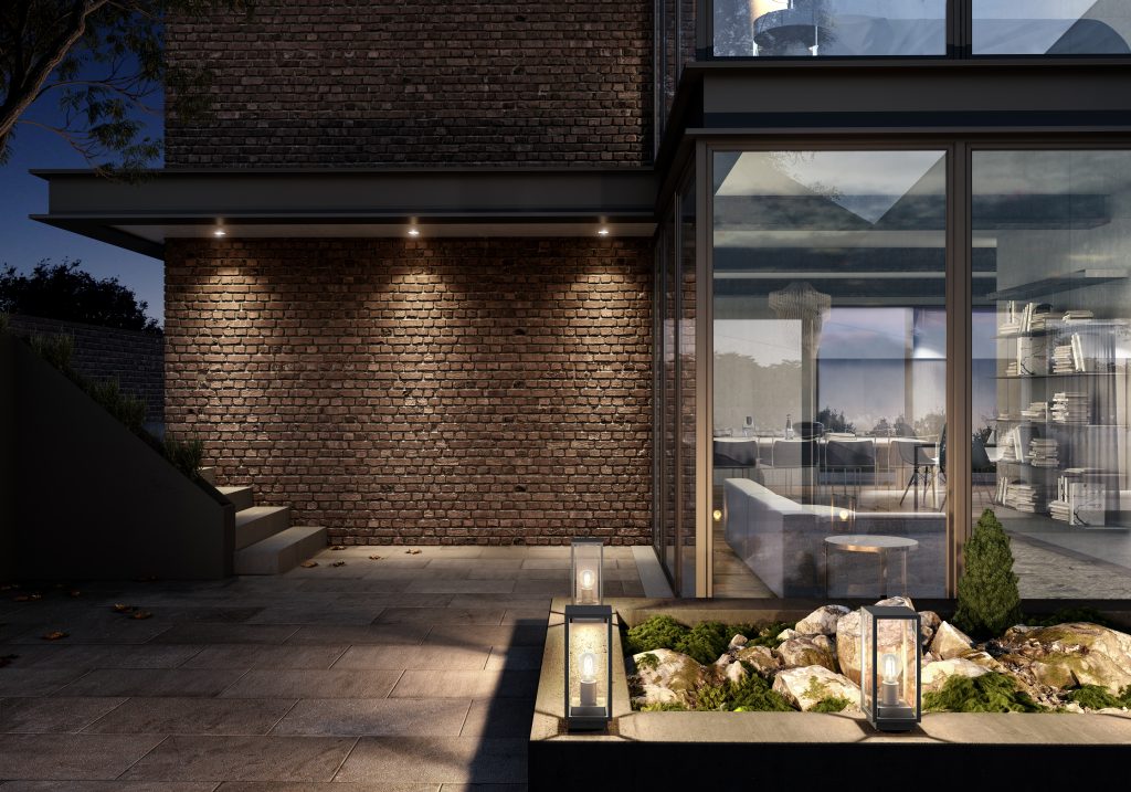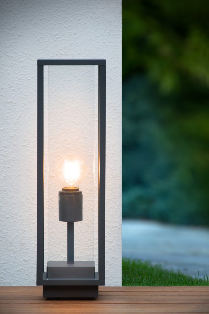 This standing pedestal lamp in aluminium creates an inviting atmosphere.