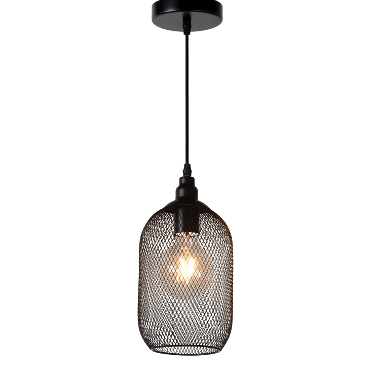 “Like a caged bird”, the expression fits Mesh very aptly. The light source is safely tucked away behind a metal armature. This black pendant lamp with a height of 29 centimetres knows how to handle itself.