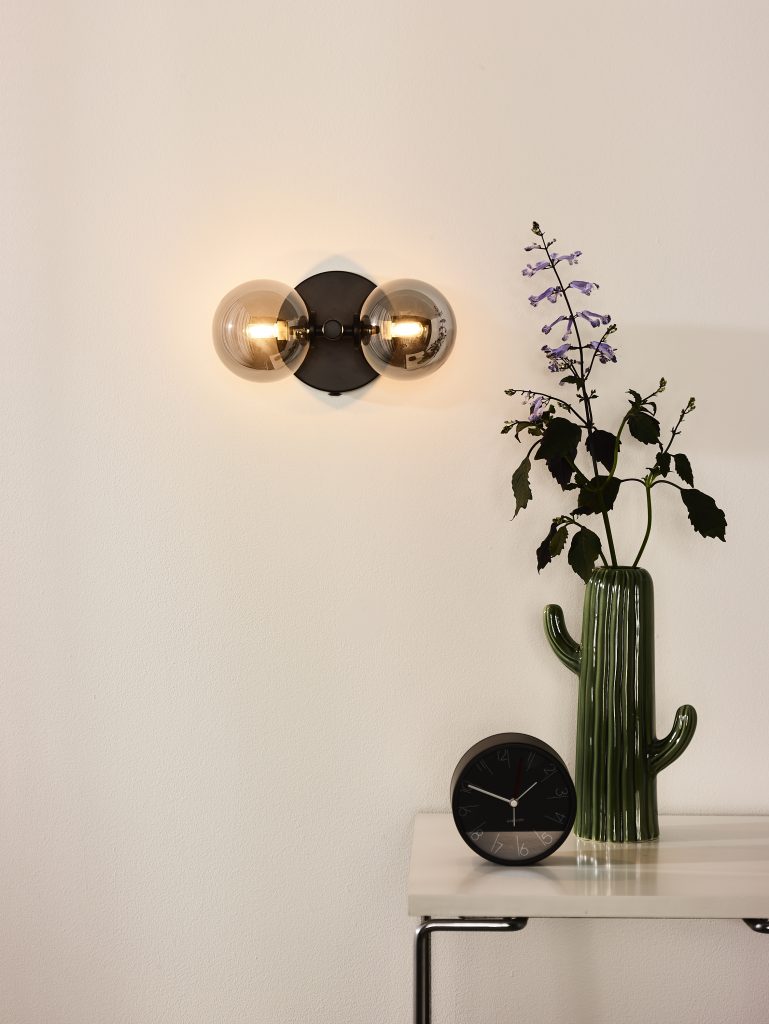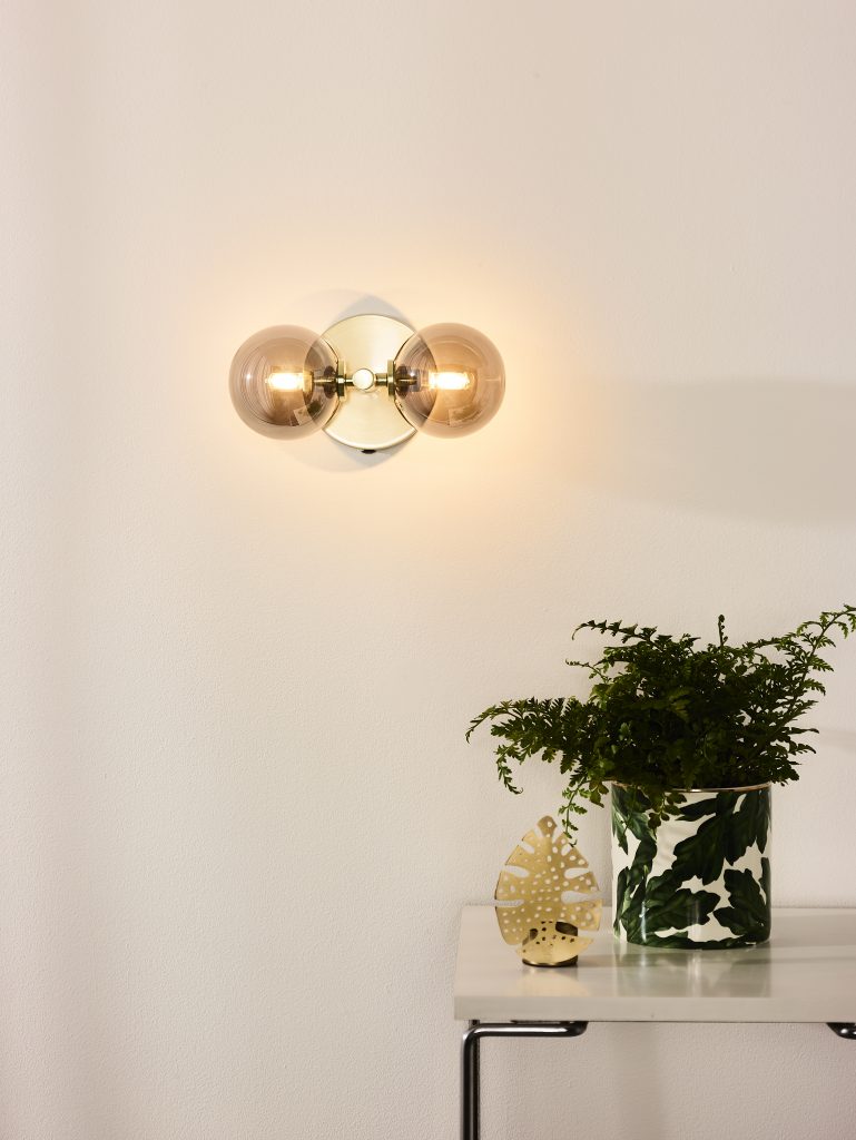 A perfect mirror image with wonderful lighting. Meet the Tycho wall lamp. This wall lamp uses two perfect glass spheres, which are positioned one above the other on the steel base.